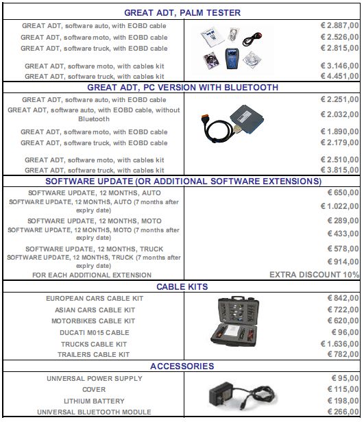 Komplett und professionell Great ADT ist ein modernes leistungsstarkes Multimarken Diagnosegerät mit einer reichhaltigen Datenbank und gehört zu den besten Instrumenten mit vollständiger Ausstattung, die der Markt derzeit zu bieten hat: hier findet der Bediener eine Antwort auf jede Diagnoseproblematik und kann jedes Problem eingehend analysieren und einer Lösung zuführen.
