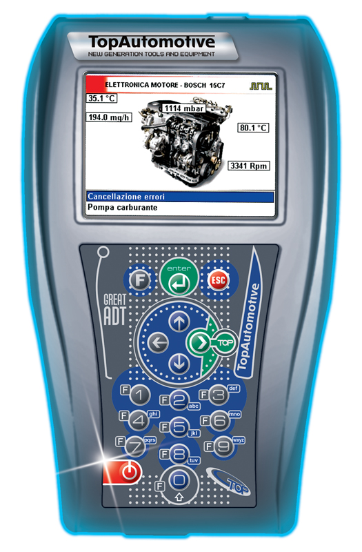 Das TOP SYSTEM im Great ADT bringt's und erschließt die Diagnose auch Technikern, die sich mit der Elektronik des Fahrzeugs befassen müssen, ohne über spezifische Erfahrungen mit solchen Instrumenten zu verfügen. Der Bediener muss lediglich den Arbeitsgang eingeben, der durchzuführen ist (Inspektion, Ersatz der Bremsbeläge, Einstellung der Federung/Aufhängung, Säuberung der Bremsen, erneuter Einsatz der Klimaanlage usw. ). Den Rest erledigt TOP SYSTEM mit seiner völlig autonomen Kommunikation mit den Steuersystemen, die für eine präzise, fehlerfreie, absolut sichere Durchführung sorgt. An den Bediener werden keine besonderen Anforderungen in Hinsicht auf die Kenntnis bzw. den Umgang mit Diagnosegeräten oder die Fahrzeugelektronik gestellt. Man verliert keine unnötige Zeit und kann sicher sein, keine Schäden am Fahrzeug zu verursachen. Die Bedienung von GREAT ADT ist schnell und intuitiv, womit viel Zeit bei jedem Arbeitsgang gespart wird. Der Mechaniker braucht sich nicht erst mühsam mit der Gebrauchsanleitung auseinanderzusetzen und kann sich anderen Eingriffen widmen, während das Gerät eigenständig die Diagnose durchführt. Auf Nummer sicher gehen Schnell und selbstständing